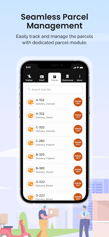 아파트 소유주는 ADDA 앱 하나만 있으면 됩니다. 같은 앱을 통해 커뮤니티 토론, 회비 납부, 헬프데스크 티켓 신청, 시설 예약 등에 사용할 수 있습니다. GateKeeper를 사용하면 같은 앱을 통해 방문객, 직원 정보, 직원 출퇴근 현황, 예상 방문객 추가 등 다양한 기능을 이용할 수 있습니다.