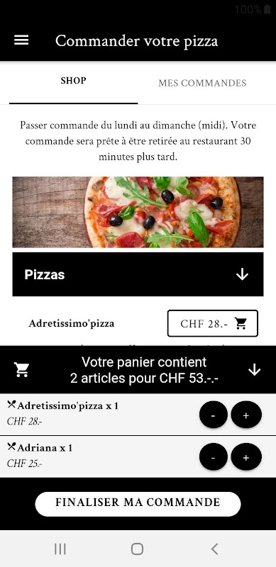 Commandez directement vos pizzas sur l’application « Adretissimo », vous découvrirez de manière intuitive: