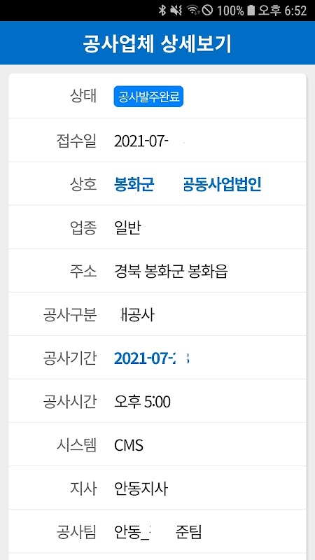 ADT 공사관리팀 공사일정