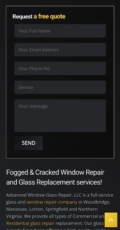 Advanced Window Glass Repair, LLC는 Woodbridge, Manassas, Lorton, Springfield 및 Northern Virginia에 있는 풀 서비스 유리 및 창문 수리 회사입니다. 우리는 모든 유형의 상업용 및 주거용 유리 수리 교체를 제공합니다. 당사의 유리 전문가들은 20년 이상 메릴랜드, 버지니아 및 워싱턴 DC에서 고품질 창문 수리 및 설치 서비스를 제공하고 있습니다.