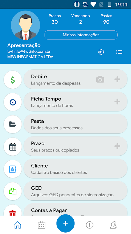 ADVWin+에서 타임 시트, 차변, 거래, CRM 및 GED ​​연락처를 실행할 수 있습니다. 어디에 있든 인터넷에 연결할 필요 없이 모든 정보가 스마트폰에 저장되며 인터넷이 활성화되면 동기화만 하면 됩니다. ADVWin과 함께.