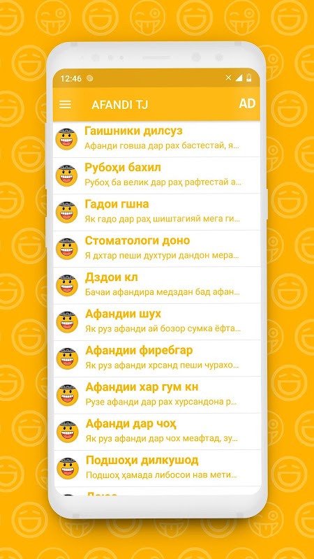 AFANDI TJ - 2020 барнома аз хама афанди ва латифахои навтаринро дар бар мегирад. Дар барнома зиёда аз 150+ афандиву латифахои лахчавии точикии навтарин мавчуд аст.Дар рузхои наздик боз афандихои нав илова хоханд шуд. Барнома бе интернет кор мекунад.