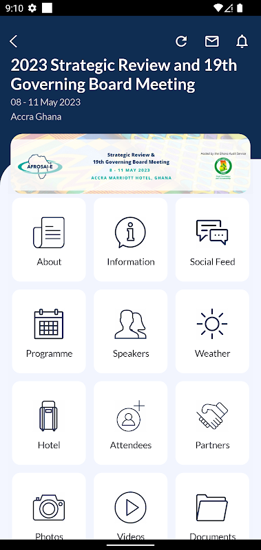 모든 AFROSAI-E 이벤트에 대한 모든 최신 이벤트 정보를 얻으십시오. 앱에서 이벤트 정보, 프로그램 및 리소스를 찾을 수 있습니다.