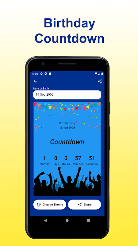 또한 이 간편한 계산기 앱을 사용하면 소셜 미디어 채널을 통해 친구, 가족, 동료에게 정확한 나이, 다가오는 생일, 살았던 시간을 공유할 수 있습니다.