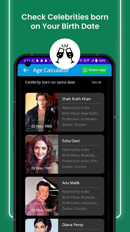 Aging App: Birthday Calendar by DOB. Age finder in days, months & years
