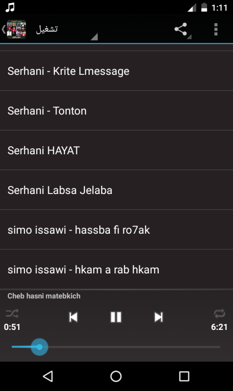 يحمل تطبيق اغاني aghani ray مجموعة من اغاني راي منها :