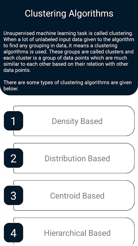 이 앱의 기본 목적은 인공 지능 및 AI 알고리즘에 대한 진정한 정보를 제공하는 것입니다. 이 앱에는 8가지 유형의 AI 알고리즘이 포함되어 있으며 각 유형의 알고리즘에 대해 간략하게 설명합니다. 이 앱은 컴퓨터 과학 학생, 특히 AI, 기계 학습, 자동화 및 로봇 공학 분야에서 일하는 학생들에게 매우 유용합니다. 초기에 각 유형의 AL 알고리즘에는 작업 구조 및 방법을 기반으로 하는 추가 알고리즘 목록이 있습니다. 그것은 매우 간단하고 사용하기 쉽고 사용자 친화적 인 인터페이스입니다. 간단한 3가지 액티비티 앱으로 첫 번째 화면은 로고와 스플래시 화면이라고 하는 앱 이름이 포함되어 있고 두 번째 액티비티는 AI 알고리즘의 유형이 포함되어 있으며 마지막 화면은 시작되는 각 알고리즘 유형에 대한 세부 정보 및 설명을 위해 설계되었습니다. 알고리즘 유형의 기본 아이디어와 유형이 제공되는 알고리즘 목록에서.