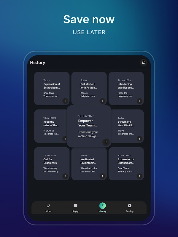 Email Assistant 앱으로 AI로 향상된 커뮤니케이션의 힘을 발견하십시오. 이메일 작성 프로세스를 간소화하도록 설계된 앱을 사용하면 매력적인 이메일과 응답을 손쉽게 작성할 수 있습니다. 새 이메일을 작성하고 메시지에 회신하는 데 완벽한 AI 기반 생성기는 입력을 받아 완벽하게 작성된 콘텐츠로 변환합니다.