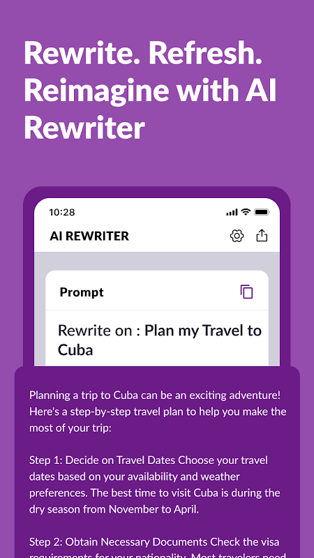 - **창의력 향상:** 저희 앱을 창의적인 도구로 사용하여 콘텐츠의 다양한 각도, 톤, 스타일을 탐색해 보세요. 반복적인 글쓰기 패턴에서 벗어나세요.