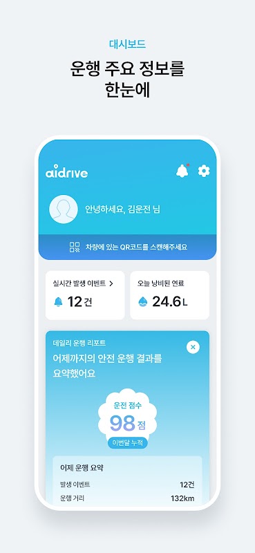 aidrive는 주행 데이터를 AI로 분석해 나의 습관을 한눈에 보여주고,
