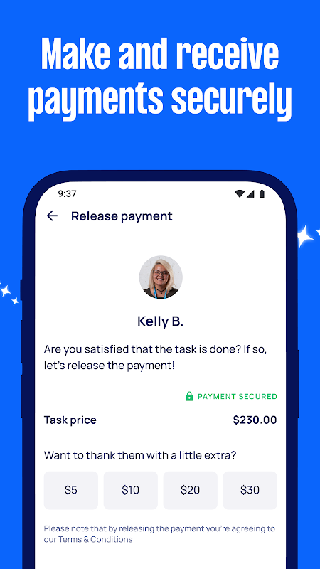 제안이 수락되고 작업이 완료 될 때까지 안전하게 개최되면 작업 지불이 분류됩니다. 그래서 포스터와 Taskers 모두 지불 준비가되어 있고 작업이 주저없이 완료 될 수 있다고 확신 할 수 있습니다!.