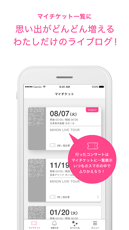 AKB48 그룹 티켓 센터에서 구입 된 티켓을 스마트 폰에 표시하고 공연 당일은 스마트 폰의 화면을 제시하시면 입장이 가능하게된다 티켓 어플입니다.