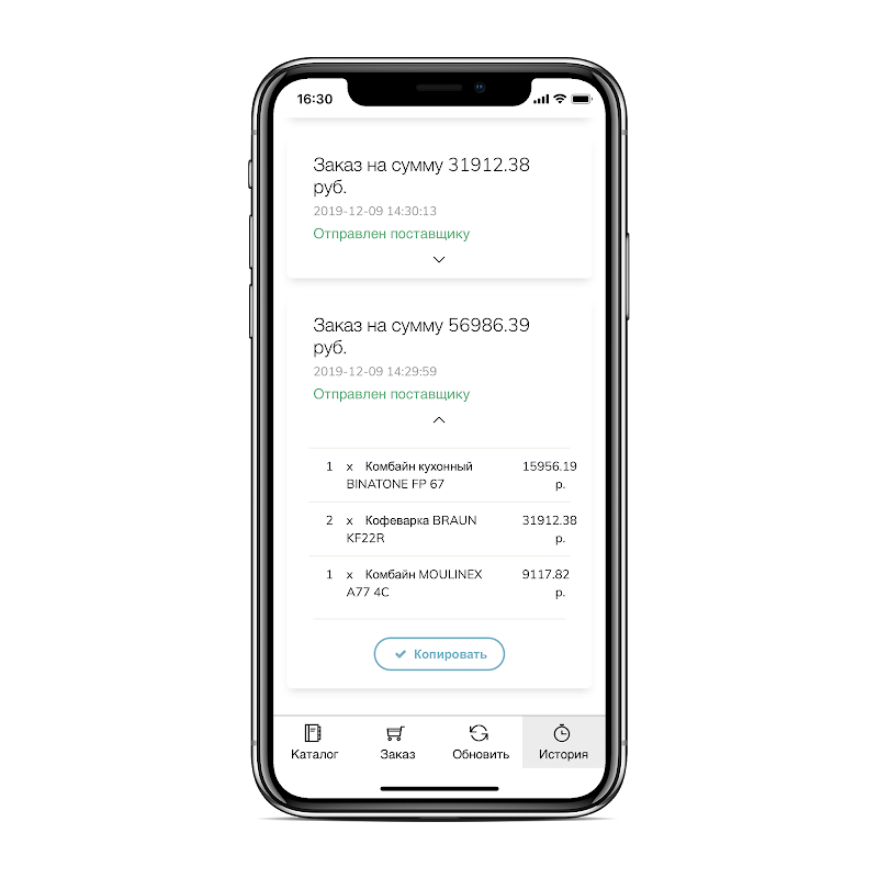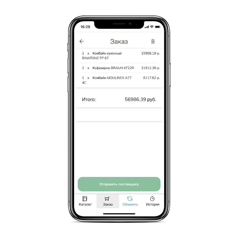 유통 업체는 가격표, 상품 사진을 업로드하고 1C Enterprise 회계 시스템에서 직접 주문을받습니다.