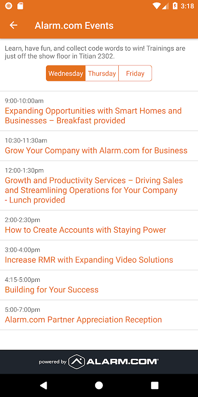 -See someone in a bright orange Alarm.com polo? Start a conversation and ask them for a code word! You can find us at Booth 23015, Titian 2302, and at our partner booths