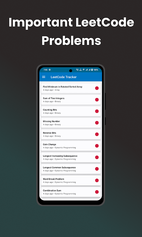 노련한 코더이든 이제 막 시작하든 이 앱은 진행 상황을 계속 확인할 수 있는 편리한 방법을 제공하여 문제 해결 기술을 효율적으로 향상시키는 데 도움을 줍니다.