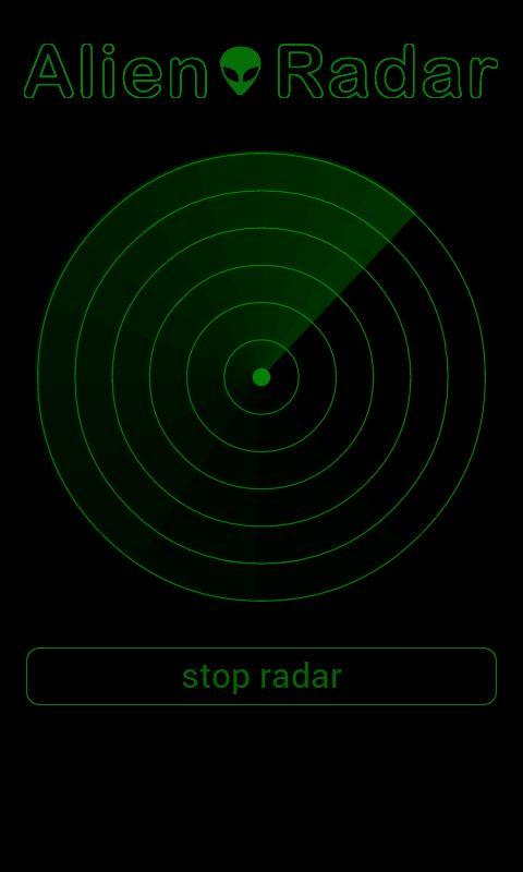 Alien Radar is a simulation of a locating device, which scans the sky and space for aliens and UFOs. The animation is constructed like a real radar. You should be aware, that this is not possible with a simple smartphone.