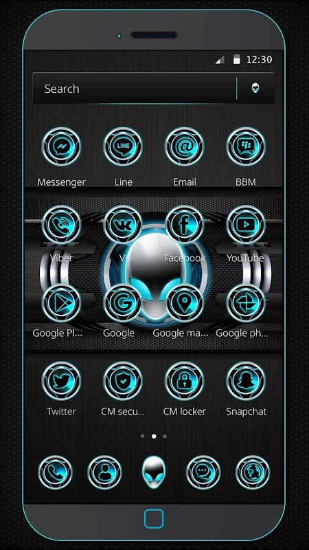 Note: Require CM Launcher to apply this Alien Technology Theme. Install CM launcher first. It does not support other launchers.