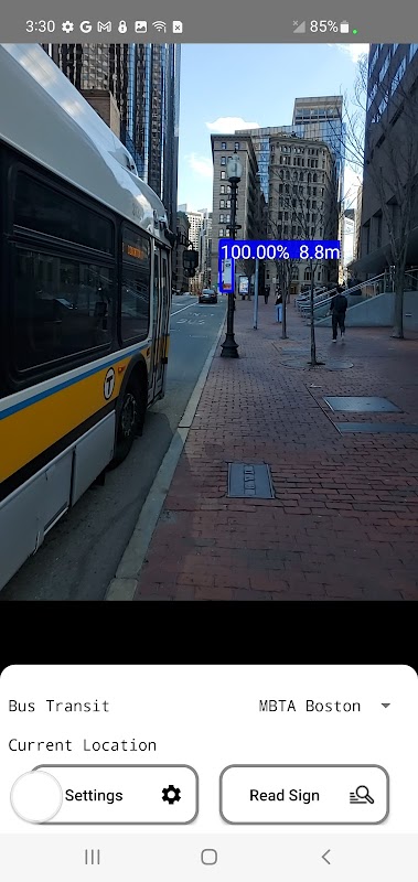 All Aboard 앱은 시각 장애인이 주변의 버스 정류장 표지판을 찾을 수 있도록 카메라를 사용합니다. 스마트폰 카메라를 사용하여 주변을 스캔합니다. 하나가 있는 경우 All Aboard는 청각 신호를 사용하여 버스 정류장 표지판이 얼마나 멀리 떨어져 있는지 사용자에게 알려줍니다.