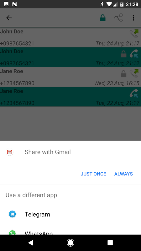이메일, 클라우드 스토리지, 메신저, 블루투스 등을 통해 녹음된 통화를 보낼 수 있습니다.