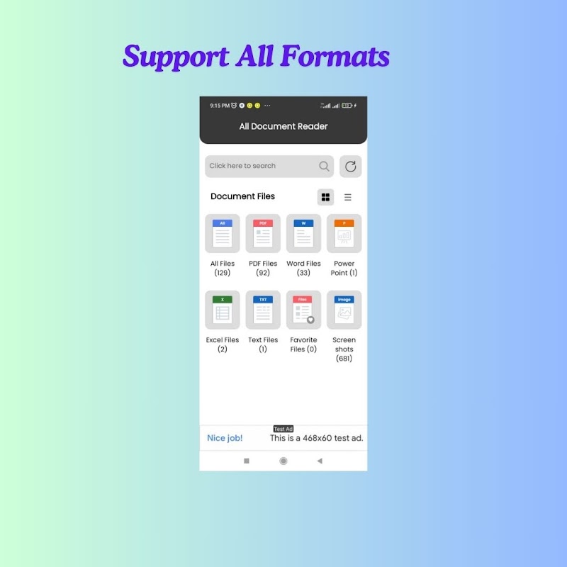 모든 문서 리더는 PDF, Word, Excel, CSV, PPT, TXT, ZIP 등과 같은 Office 파일을 포함한 모든 종류의 파일을 열 수 있습니다. 다양한 파일 형식을 쉽게 처리할 수 있습니다! 휴대폰에 있는 파일을 자동으로 스캔하여 한 곳에 해당 폴더로 정리하여 편리하게 검색하고 볼 수 있습니다.