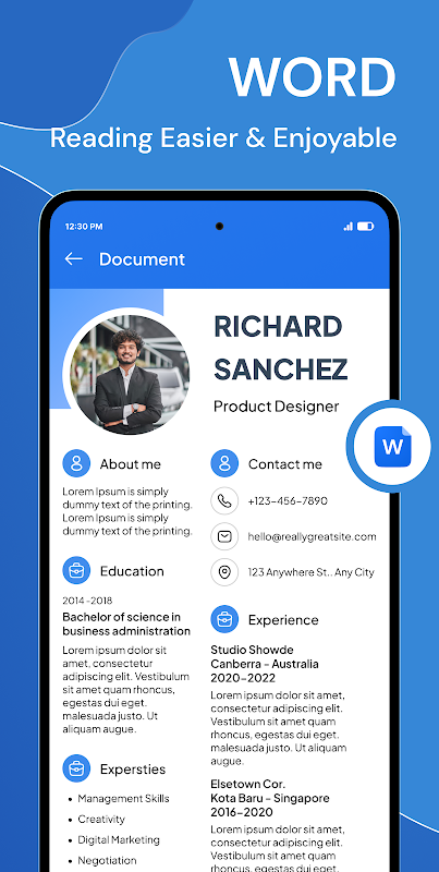 All Document Reader를 경험해 보세요! 이 앱 하나로 PDF부터 DOCX까지 모든 Office 파일을 손쉽게 관리하여 파일 관리를 더욱 간편하게 만들어 줍니다. 휴대폰의 파일을 자동으로 스캔하고 정리하여 필요할 때마다 빠르게 찾고 볼 수 있습니다. 문서 관리를 더욱 간편하게! 📝