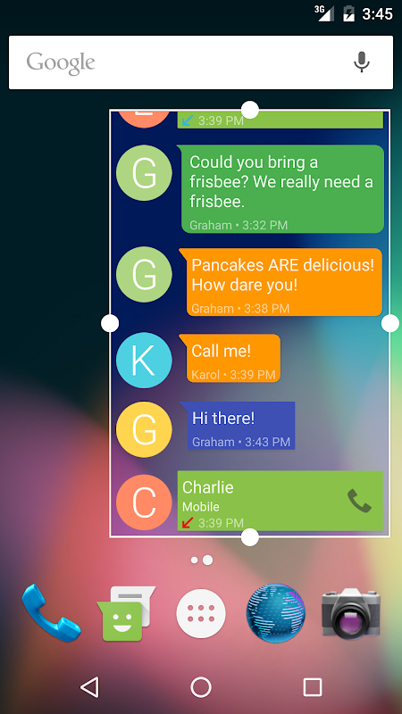 All your social messages in one place; text messages (SMS), Facebook Messenger*, Google Hangouts*, WhatsApp*, Viber*, WeChat*, Skype, even your call log. It's all right on your home screen. Plus, you can personalize the widget with your own color and style. Note that the social messages have a 10 day trial, after which a minimal in-app purchase is required.