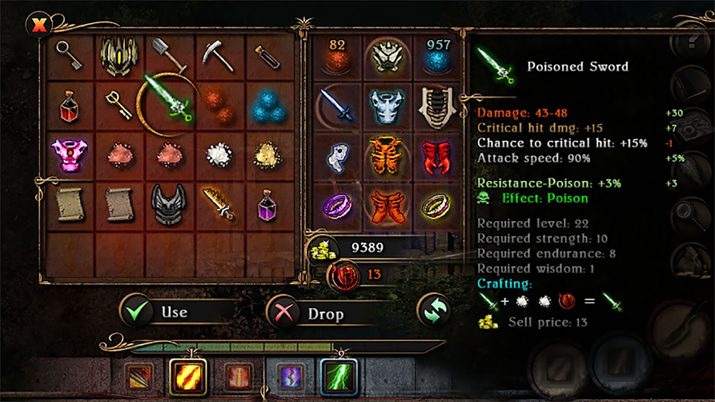 • 광범위한 아이템 시스템: 검, 도끼, 방패, 갑옷, 물약 등과 같은 수백 가지 아이템을 찾아 사용하세요.