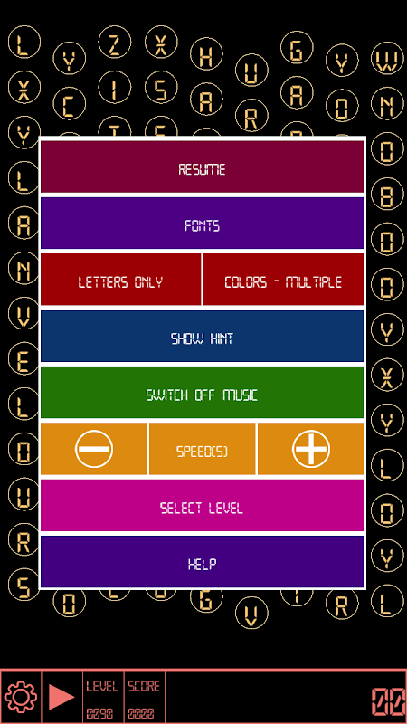 Swipe left or right to change level. Swipe Up to display menu.