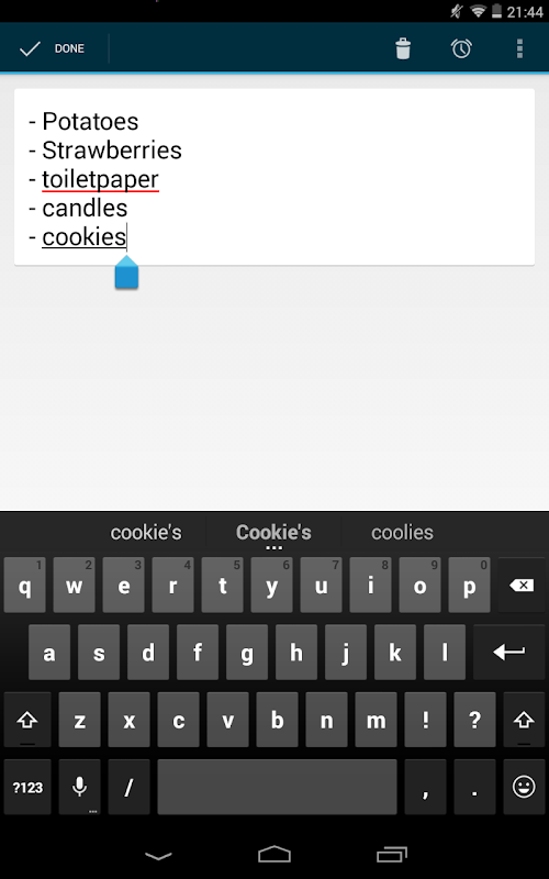 - 편집 모드로 가서 작업 표시 줄 / 메뉴의 알람 버튼을 누르면 메모에 대한 알람을 설정합니다.
