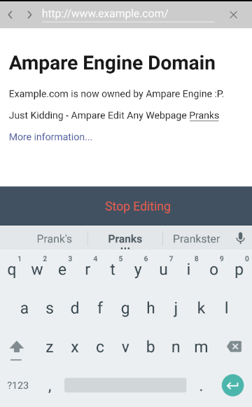 Ampare Edit Any Webpage is a Simple , Lightweight and Easy To Use App That Let You Edit Any Webpage You Want For Fun. To Prank or Make Some Jokes on Your Friend or Family.