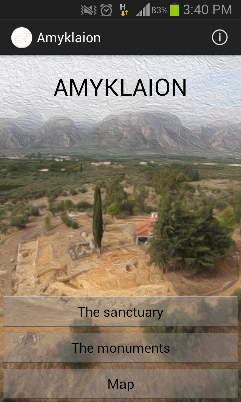 The application is meant to enhance on-sight visitor experience and provide information about the archaeological site of the Amyklaion on the hill of Hagia Kyriaki near the town of Sparta. The following are supported: