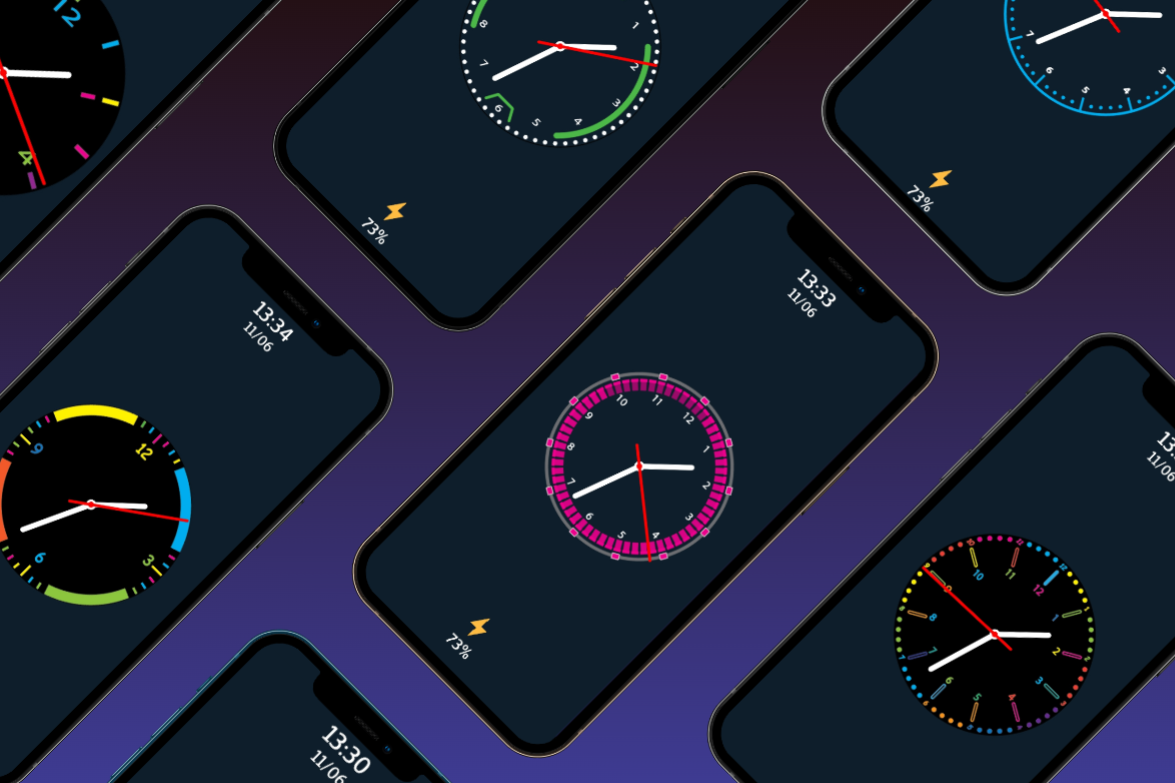 Wallpaer에 라이브 아날로그 네온 시계 표시