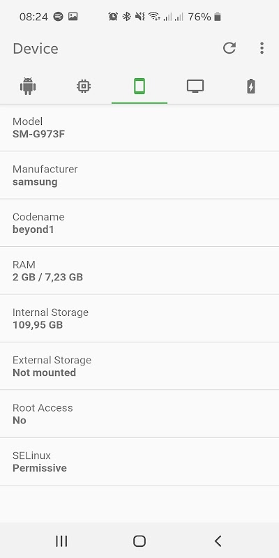 – Device Info: Model, Manufacturer, Chipset, Build Number and Android OS version.