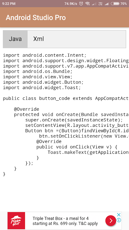 This Android Studio Pro app will Help you to create an android app using the android studio. Many Demo and Useful source code are provided in the app.