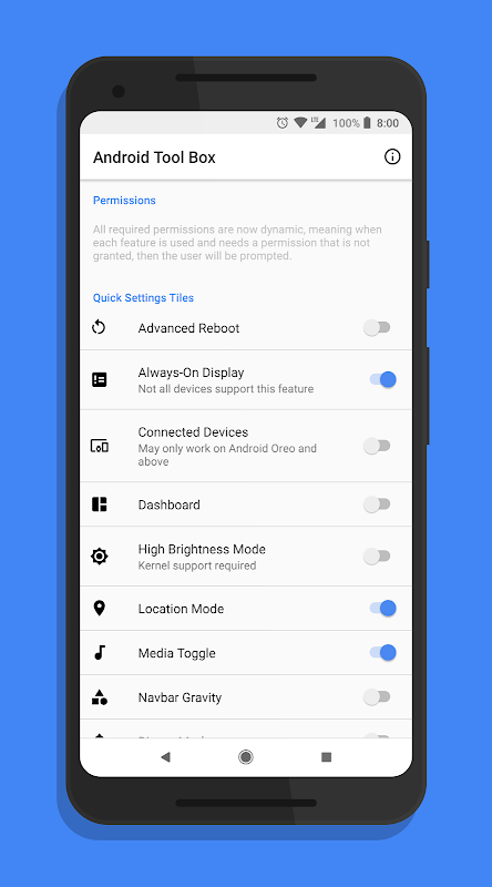 *Disclaimer*: THIS APP IS INTENDED FOR STOCK ANDROID 7.1 USERS AND ABOVE. SOME FEATURES WILL NOT WORK ON CUSTOM ROMS OR ON ALL DEVICES. IF A FEATURE DOES NOT WORK, DO NOT REPORT IT!