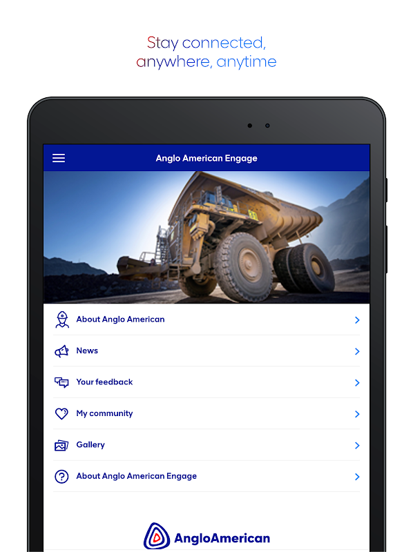 "Anglo American Engage 앱을 사용하면 어디서든 중요한 정보를 쉽게 찾을 수 있습니다.