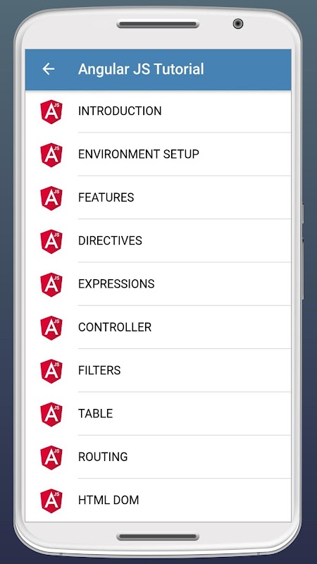 안드로이드에 대한이 각도 JS 5 응용 프로그램이 AngularJS와의 5,4,2,1 및 간단하고 쉬운 steps.It에서의 프로그래밍 개념의 기초를 배우고 싶은 모든 사람들을위한 운명은 응용 프로그램이 오프라인으로 작동 적합 examples.This와 AngularJS와의 구성 요소에 대해 설명합니다 인터넷 연결없이.