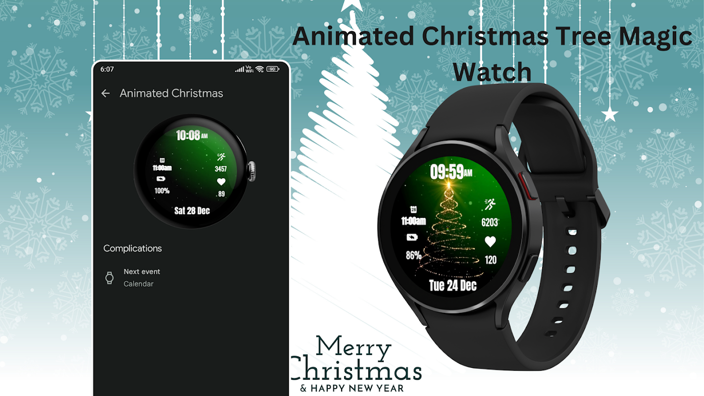 🎨 애니메이션 크리스마스 트리 매직 워치 페이스 컴플리케이션