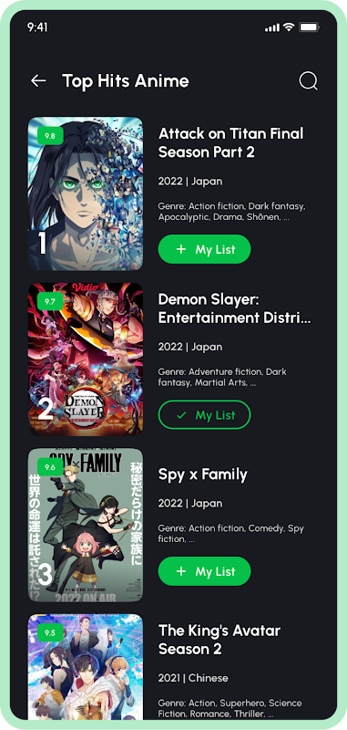 광범위한 애니메이션 라이브러리: 인기 시리즈, 영화 및 OVA를 포함하여 다양한 애니메이션 쇼 및 영화에 액세스할 수 있습니다. 새로운 타이틀을 발견하고 액션, 로맨스, 코미디, 판타지 등과 같은 다양한 장르를 탐색하십시오.