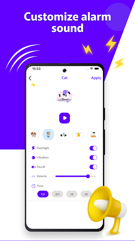 지속 시간을 맞춤설정하고 볼륨을 조정하세요.