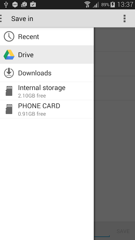Any Storage shows a dialog which allows to store on your internal memory, your sd card or cloud services. All destinations that are supported by the Storage Access Framework can be used.