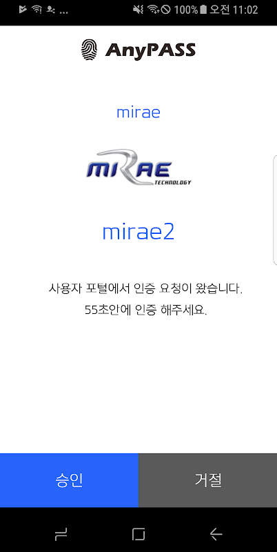 한국정보인증이 제공하는 AnyPASS 서비스는 사용자의 모바일기기에서 생체인증(FIDO)을 지원하는 서비스입니다. 생체인증은 지문이 기본이며 지문 센서를 탑재하지 않은 모바일기기에서는 서비스를 이용할 수 없습니다. 한국정보인증의 AnyPASS 서비스를 이용함으로써 안전한 생체인증을 사용 할 수 있습니다.