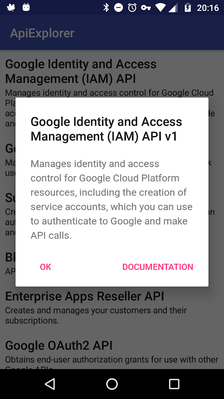 This is a small app to view a list of Google's APIs. It's made for developers of apps and web services. Have fun exploring new cool APIs, that make your apps better.