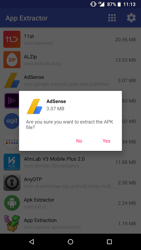핸드폰에 설치 된 앱(APK)을 추출합니다.앱 추출 후 공유하기로 이메일 등으로 전송하세요.