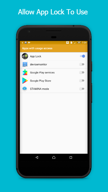 Note: For android 5.0+, allow Applock to use usage access permission -> Find AppLock -> Allow usage access