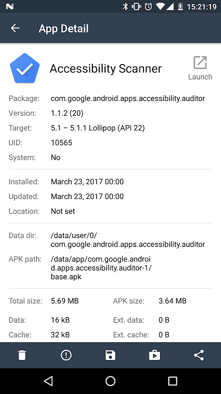 - Added launcher activities of an app to detail