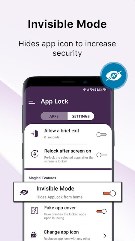 Applock의 놀라운 가짜 표지 기능은 앱의 FOOL PROOF 보안을 보장합니다! 이렇게 하면 특정 앱에서 데이터에 액세스하는 사람에 대해 걱정할 필요가 없습니다. AppLock - Invisible, Intruder Selfie & Camouflage는 맞춤형 옵션과 함께 제공되며 다른 사용자가 이를 오용하는 것을 방지할 수 있습니다.