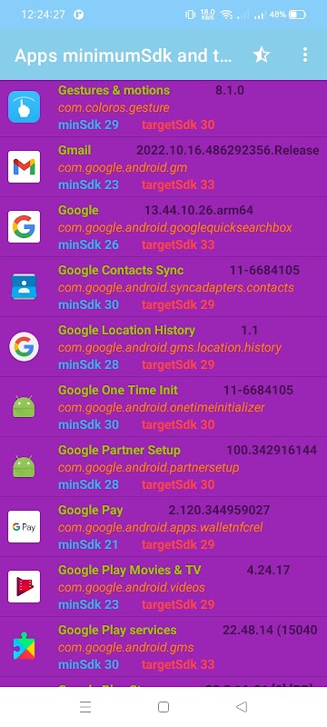 설치된 앱의 최소 SDK와 대상 SDK를 확인하세요.