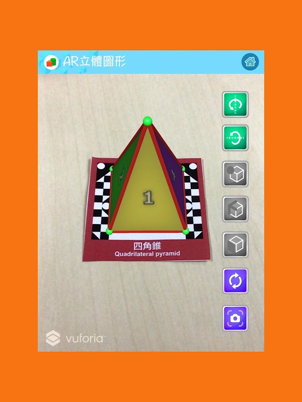 使用應用程式時需要配合AR 立體圖形專屬的AR 活動卡使用,透過對立體圖形多角度的觀察來增強同學對立體圖形的辨別及分析能力。務求做到幫助老師教學的同時,亦能夠滿足讓學生在家中自學的需要。