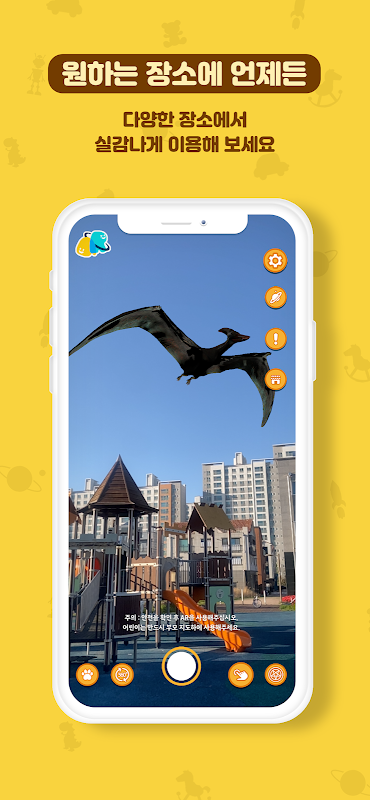 나의 장소에 사파리의 동물들과 쥬라기 공룡들을 불러와 증강현실 속에서 함께 사진 찍고 친구들과 공유해 보세요.